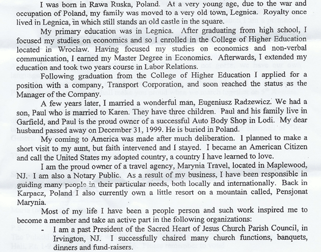 Maria Radzewicz prowadzila agencje, która byla najbardziej przyjaznym miejscem dla rodaków w Irvington, NJ i okolicy