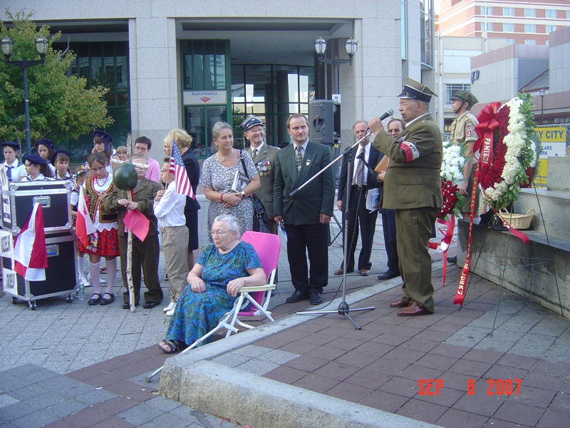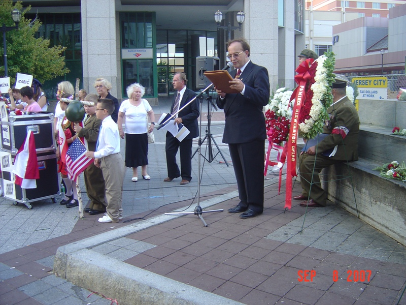 Prezes Kongresu Polonii Amerykańskiej oddz. NJ, Ludwik Wnękowicz odczytuje Apel Poległych